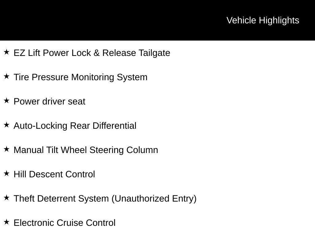 - EZ Lift power lock and release tailgate
